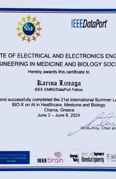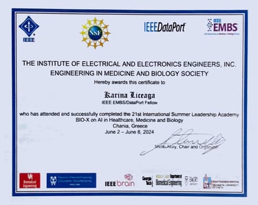 Data Science & Engineering in Medicine & Biology Scholar IEEE Engineering Medicine & Biology Society | 2024 *Attended and successfully completed the BIO-X Summer Leadership Academy Program in Chania, Greece. Learned about: AI impact in Healthcare, Wearable and AI for diabetes prevention, AI with XR, Biomarkers discovery using OMICS and AI, Computational Brain Science, Deep Learning Neural Network, Microfluidic Technologies, Synthetic Data, and more...